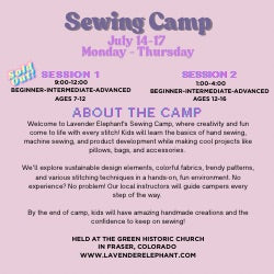 Welcome to Lavender Elephant's Sewing Camp, where creativity and fun come to life with every stitch! Kids will learn the basics of hand sewing, machine sewing, and product development while making cool projects like pillows, bags, and accessories.